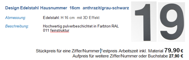 Wir haben die Möglichkeit Ihre Beschriftung bis zu 80cm gossen Buchstaben/Zahlen in unseren Haus schnell und ganz nach Ihren Wünschen herzustellen. Gerne bringen wir die Gleiche auf tragfähigen Untergrund an oder Montieren Hinweis- Werbeschilder, egal ob Außen- oder Innenbereich